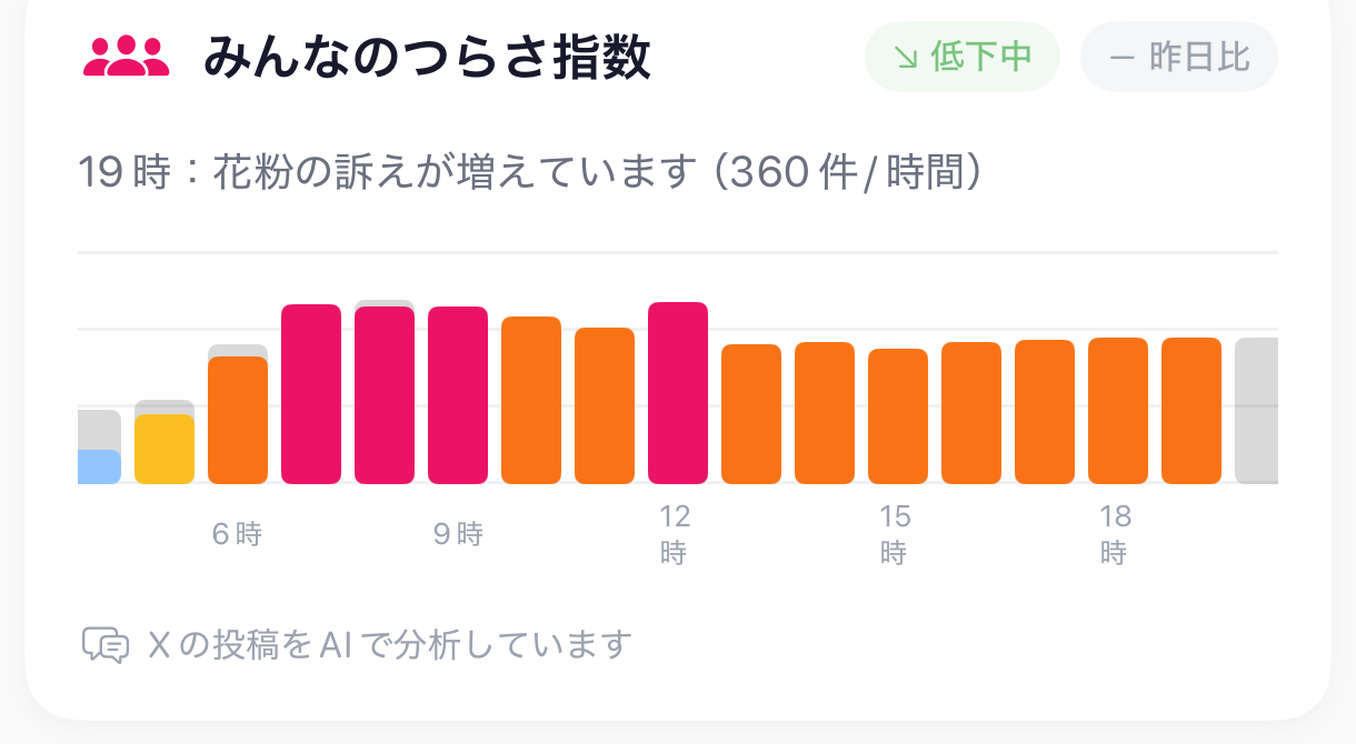 公式データだけでなく、SNSの声から「今日の実感」がわかる。データと体感のギャップを埋めます。