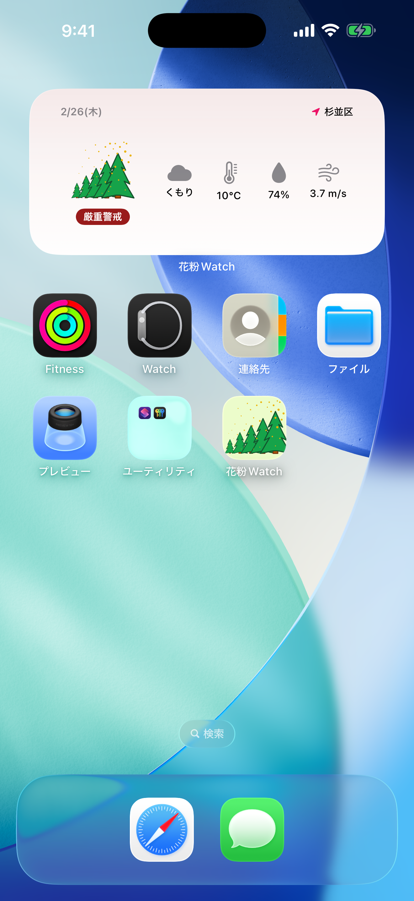 Apple WeatherKitと連携し、天気情報と花粉への影響度を合わせて表示。雨上がりや晴天時の飛散予測に役立ちます。